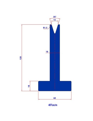 Matriz S1730 HR 35º de tipo Europeu, com V de 12mm, 120mm de altura e ângulo de 35º.