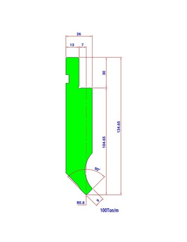 Punção 1018 IH 90º de tipo Europeu, disponível com diversos raios, com cerca de 105 mm de altura e ângulo de 90º.