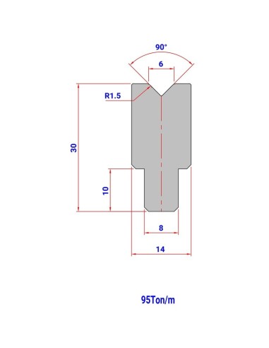 Matriz 420 HR/TH 90º de tipo Europeu, com V de 6mm, 30mm de altura e ângulo de 90º.