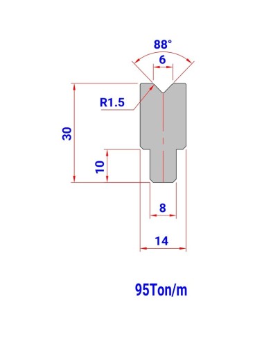 Matriz 420 HR/TH 88º de tipo Europeu, com V de 6mm, 30mm de altura e ângulo de 88º.