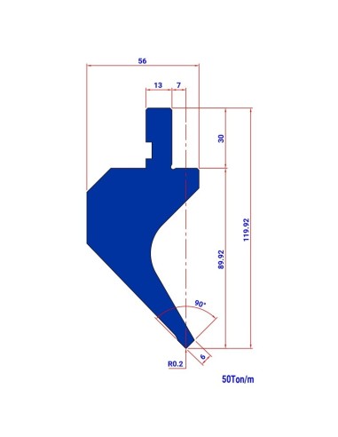 Punção 463 HR/TH 90º de tipo Europeu, com Raio de 0,2/0,6/0,8, 90mm de altura e ângulo de 90º.