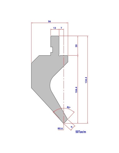 Punção com fixação normalizada tipo Europeu, disponível com diferentes raios para obter os melhores resultados de quinagem.
