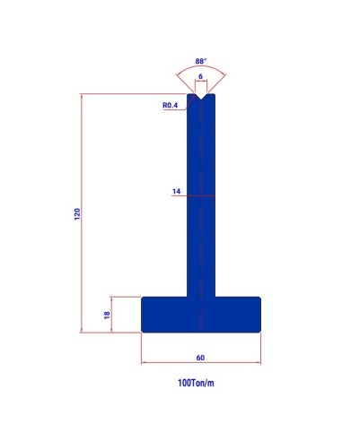 Matriz S2105 HR 88º de tipo Europeu, com V de 6mm, 120mm de altura e ângulo de 88º.