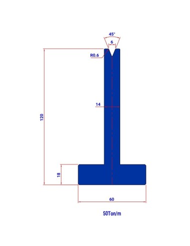 Matriz S1113 HR 45º de tipo Europeu, com V de 6mm, 120mm de altura e ângulo de 45º.
