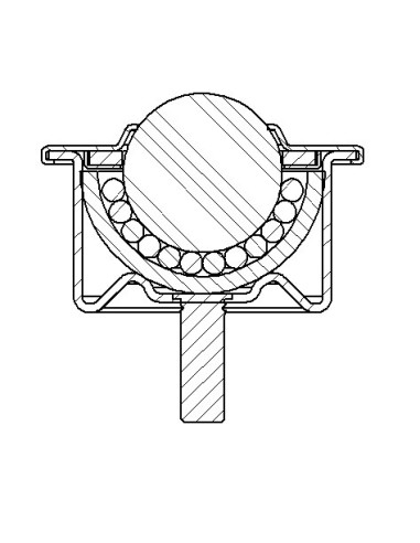 Esta esfera de transferência consiste em três peças estampadas, o invólucro, o casco do rolamento, o pino roscado, uma esfera de rolamento