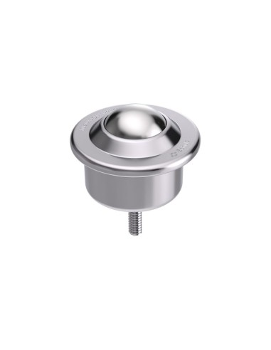 Esta esfera de transferência consiste em três peças estampadas, o invólucro, o casco do rolamento, o pino roscado, uma esfera de rolamento