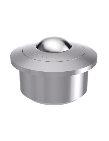 Este rodízio de esferas Schulz / unidade de transferência de esferas consiste num invólucro e tampa superior como peças sólidas torneadas, uma esfera de rolamento e várias esferas de apoio.