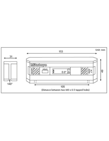 Nivel com visor digital de grande legibilidade. Leitura rápida e precisa de todos os ângulos num intervalo de 360° (4x90°). Caixa de alumínio com faces de apoio de precisão. Setas de orientação no visor que facilitam o alinhamento a 0° ou a 90°. Função de retenção do valor para fixar o resultado da medição quando a posição de leitura é desfavorável. Ajuste do ponto zero em qualquer posição. Em medições de altura, o visor gira e permite a leitura a partir de baixo. Distância entre os dois orifícios M3x0,5 mm da base: 105 mm. Campo de aplicação: medição de planicidade, perpendicularidade e angularidade. Inclui estojo e 1 pilha tamanho 6LR61 (X4 3080).