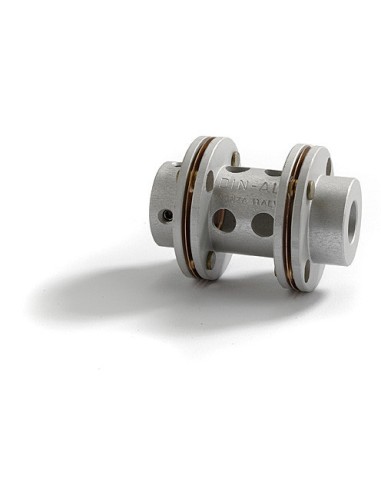Os cubos duplos exteriores tornam possível a ligação de grandes veios.Fixação com perno. Também estão disponíveis versões com perno e chaveta.