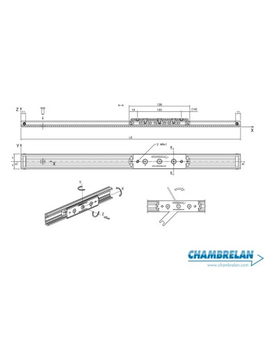 Esta guia de alumínio anodizado D52 está equipado com um ou mais cursores de roletes INOX BP53.