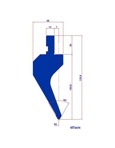 Punção 454 HR 60º de tipo Europeu, com Raio de 0,6/2mm, 105/104mm de altura & ângulo de 60º.