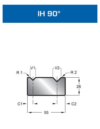 Matrizes com fixação normalizada tipo Europeu, disponível com diferentes raios para obter os melhores resultados de quinagem.