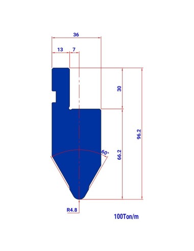 Punção 003 HR 60º de tipo Europeu, com Raio de 4,8/6mm, 105mm de altura e ângulo de 60º.