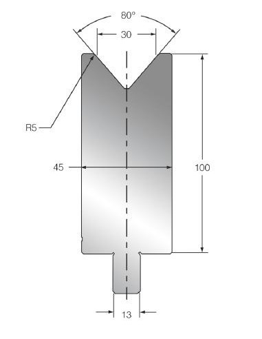 - Dimensão do V (mm)